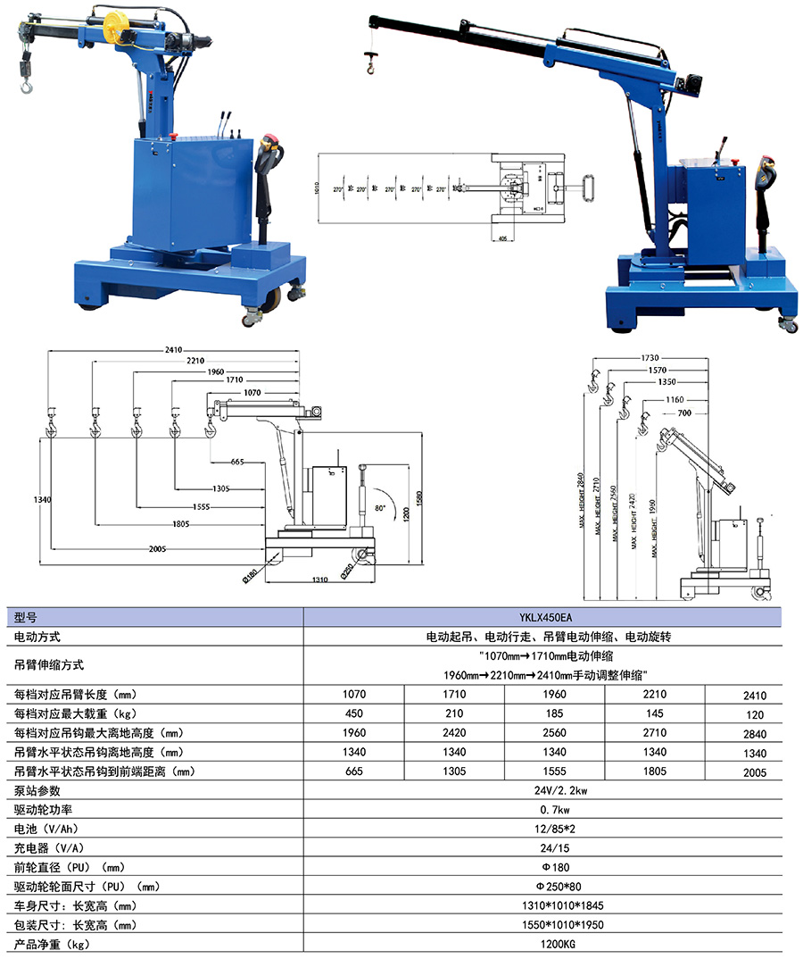 ● 電動起升,電動行走,吊臂電動伸縮,電動旋轉設計,省時省力,提高工作效率。