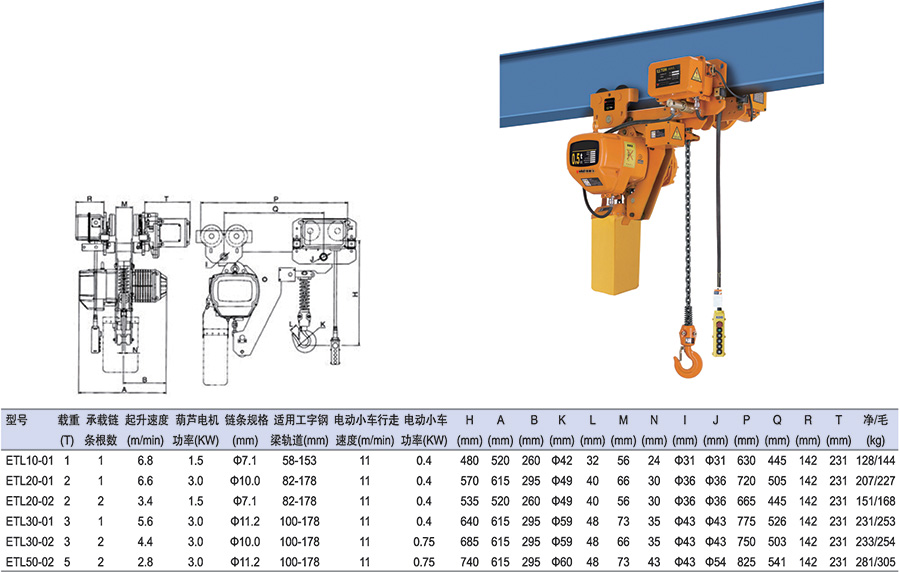 ● 標準起升高度為3米,其它高度可定制。