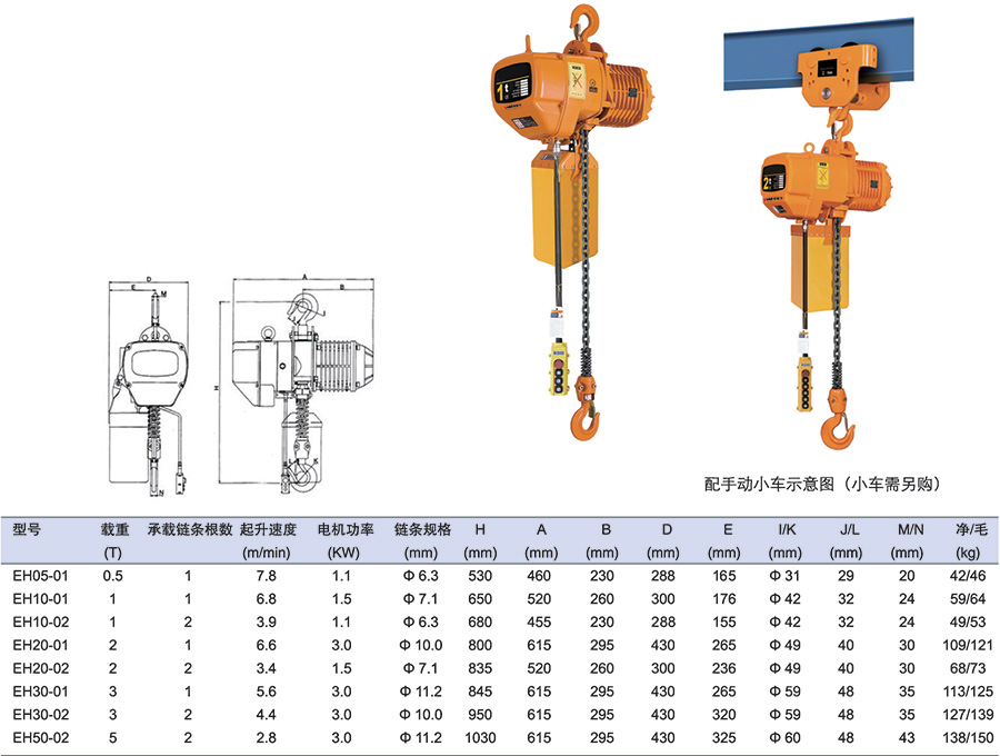 ● 環鏈電動葫蘆自重輕,尺寸小。