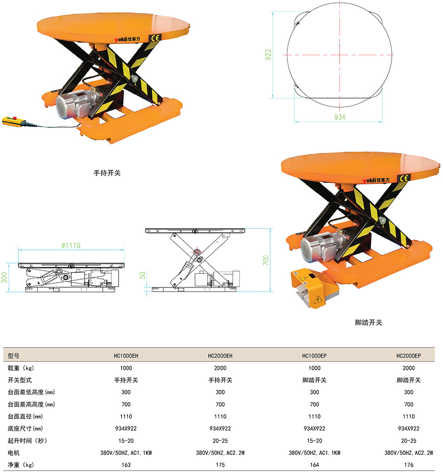 ● 起升開關有手持開關、腳踏開關可選。