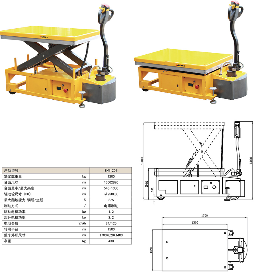● 全電動升降平臺,電動起升,電動行走,使用220V充電電源。