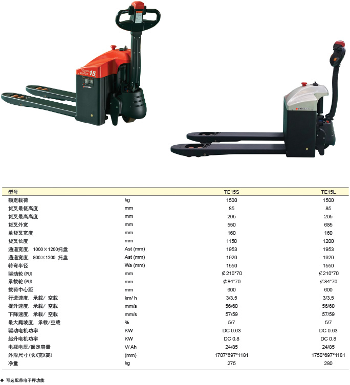 ● 動力強勁, 輕松省力,載荷1.5噸,滿足大部分企業的貨物搬運需求全電動設計,體積小巧,節省空間,在很小的通道能順利通利。