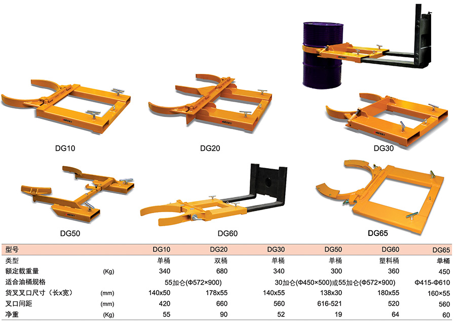 ● 叉車專用屬具,用于油桶搬運、堆放。