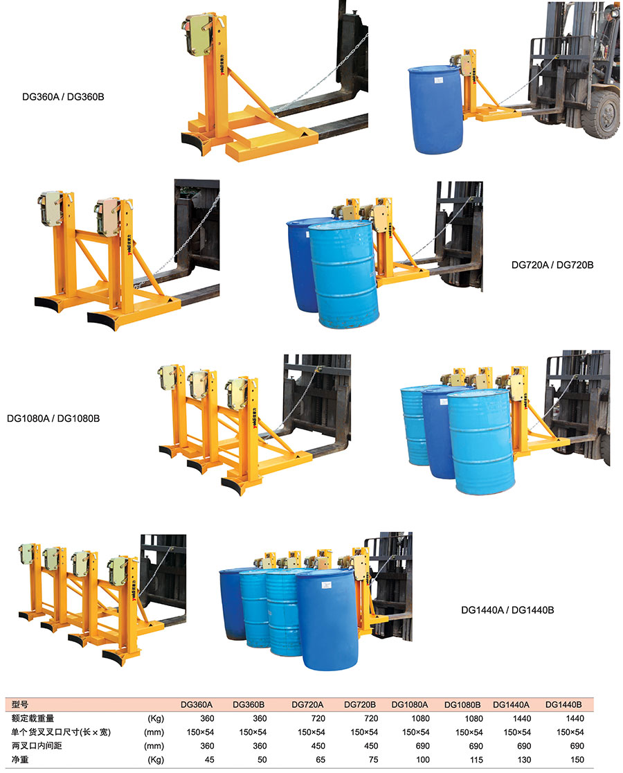 ● 叉車專用屬具,用于油桶搬運,堆放。