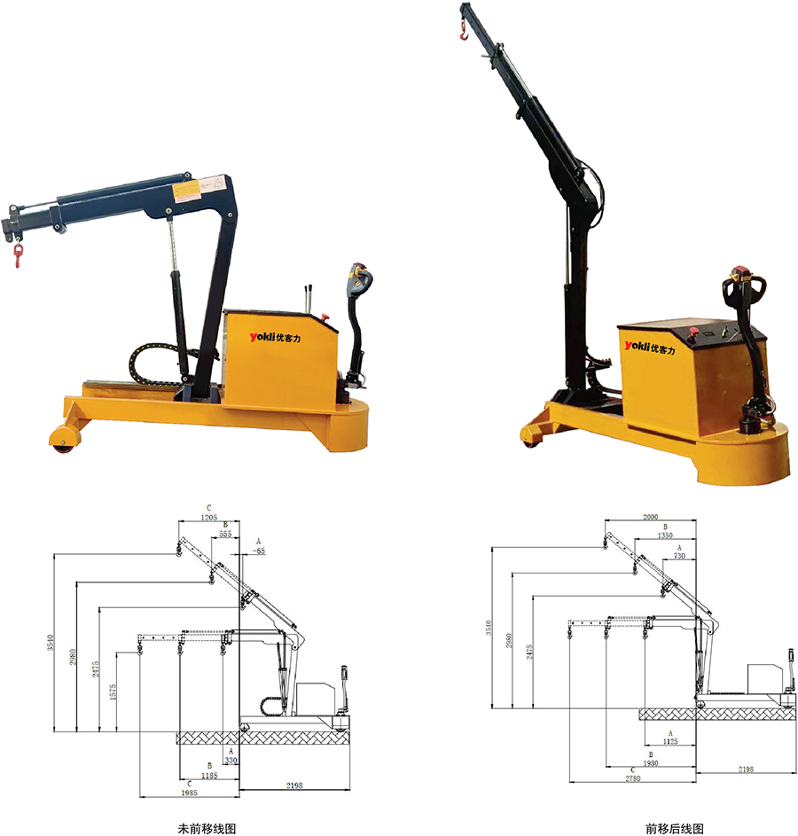 ● 電動行走,液壓起升,液壓前移,液壓前伸多功能一體化平衡重式全電動單臂吊, 車架人性化設(shè)計,可根據(jù)自身情況隨意調(diào)整高度和角度,使用方便省時省力提高工作效率。